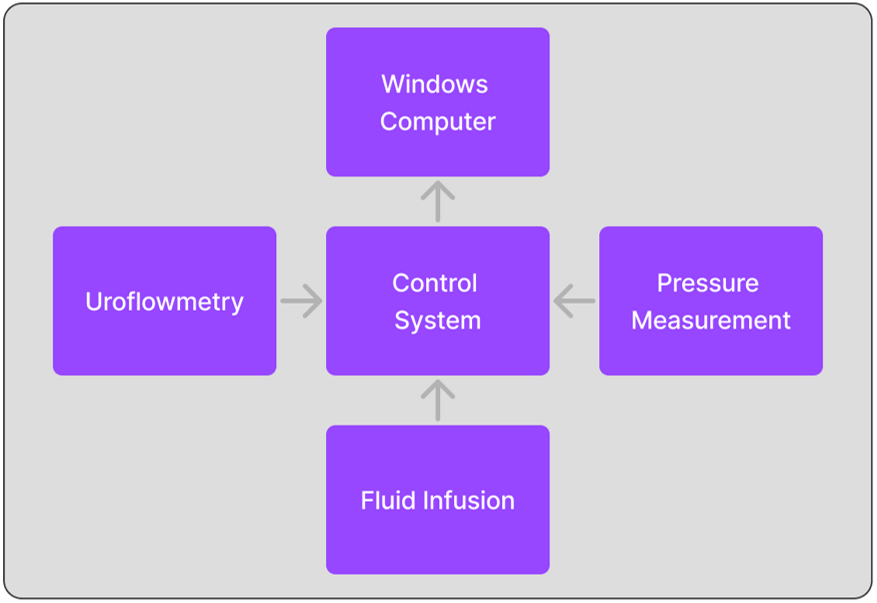 The Uroflowmetry sub-system measures the volume and flow rate of fluid voided. Click on the image below to see the Uroflowmetry design information.